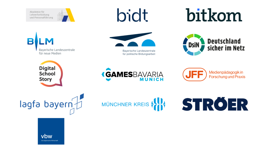 ALP Dillingen, Bayerisches Forschungsinstitut für Digitale Transformation bidt, Bitkom e.V., Bayerische Landeszentrale für neue Medien, Bayerische Landeszentrale für politische Bildungsarbeit, Deutschland sicher im Netz e.V., Digital School Story, Games Bavaria, JFF – Institut für Medienpädagogik in Forschung und Praxis, lagfa Bayern e.V., Münchner Kreis e.V. und vbw – Die bayerische Wirtschaft.