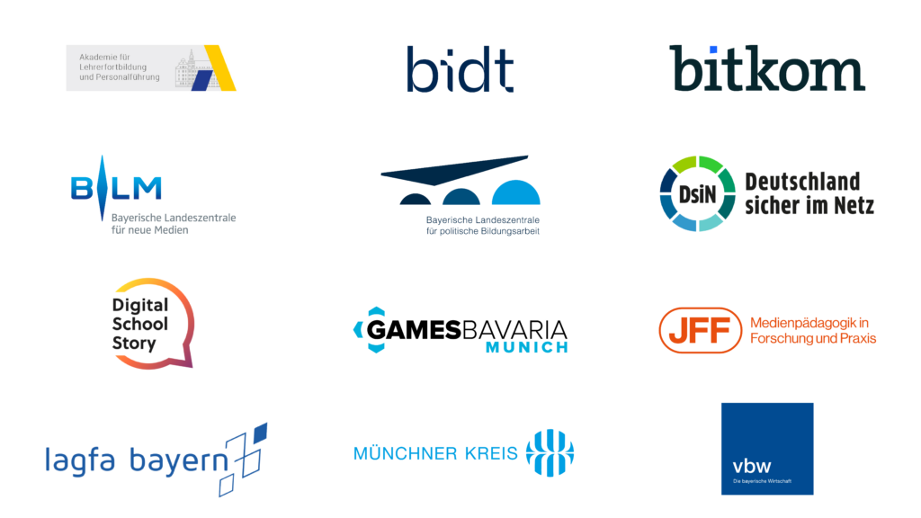 ALP Dillingen, Bayerisches Forschungsinstitut für Digitale Transformation bidt, Bitkom e.V., Bayerische Landeszentrale für neue Medien, Bayerische Landeszentrale für politische Bildungsarbeit, Deutschland sicher im Netz e.V., Digital School Story, Games Bavaria, JFF – Institut für Medienpädagogik in Forschung und Praxis, lagfa Bayern e.V., Münchner Kreis e.V. und vbw – Die bayerische Wirtschaft.