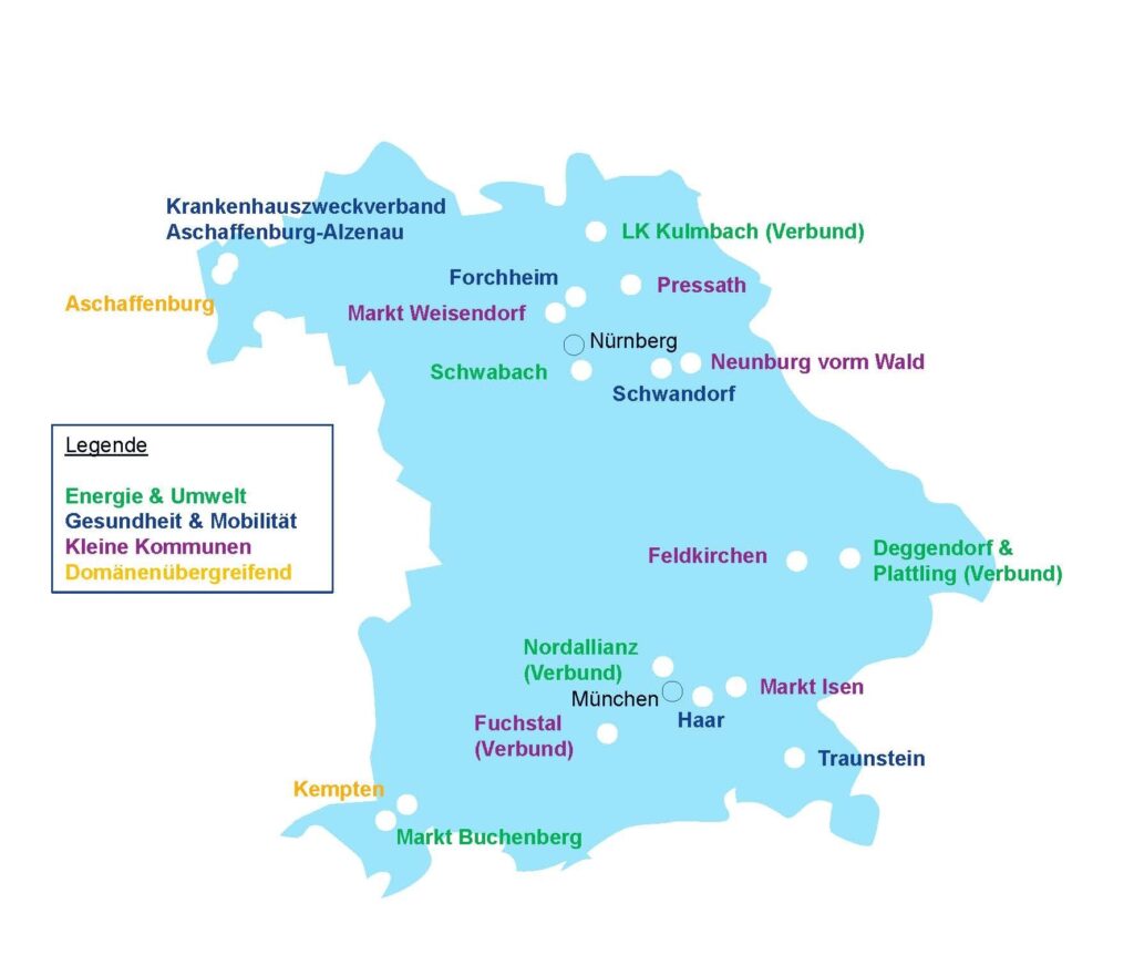 17 Modellkommunen aus allen sieben bayerischen Regierungsbezirken haben mit TwinBy Pionierarbeit geleistet – darunter Städte, Gemeinden und Verwaltungsgemeinschaften unterschiedlichster Größe.